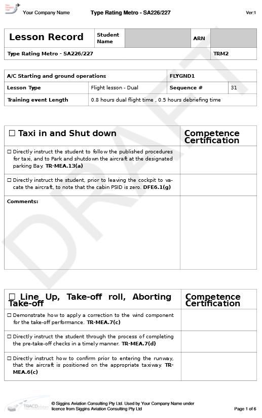 TRACDsolutions provides all of this background material, techniques and explanations and describes it in the appropriate context – for a briefing, demonstration, monitoring situation, assessment and so on. The particular PC, UPK and AK is presented in the context it will be used. This produces a practical document that can be used to provide clear training guidance and focus the learning outcomes. As usual, you should review these techniques and information, modifying them where desired, to ensure this is how you want your instructors or check pilots to teach and assess.