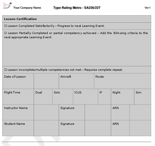 - You can select an item to edit and customise the teaching notes. Simply add your particular technique, specific airspeed, configurations or any unique background information that you want taught at that point.